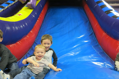 I took the children to the bouncy house on Tuesday. They had been asking to go for quite a while, but Kara and I don't like to take the children to indoor play activities in the summer. It's no longer summer and it's been windy or wet or windy and wet for days now. Last week we had four power outages due to high winds. It has not been good play outside weather most days. So when the children asked again to go, I acquiesced. It was Lincoln's first time there. He played the entire hour and one half, a lot of that time he ran around on his own. He could not access all the play equipment that the older children could, but that didn't bother him.